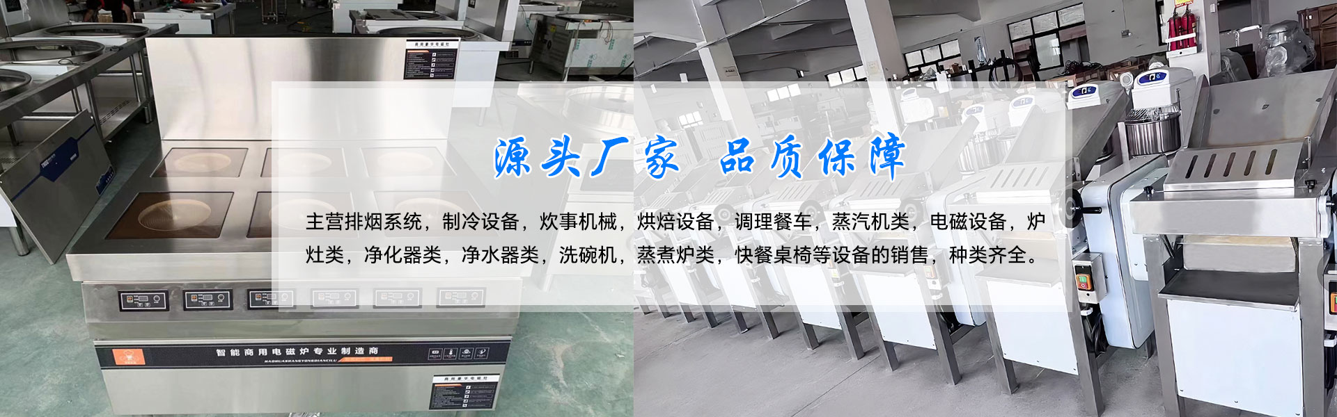 公司主營排煙系統,制冷設備,炊事機械,烘焙設備,調理餐車,蒸汽機類,電磁設備,爐灶類,凈化器類,凈水器類,洗碗機,蒸煮爐類,快餐桌椅等設備的銷售,種類齊全。